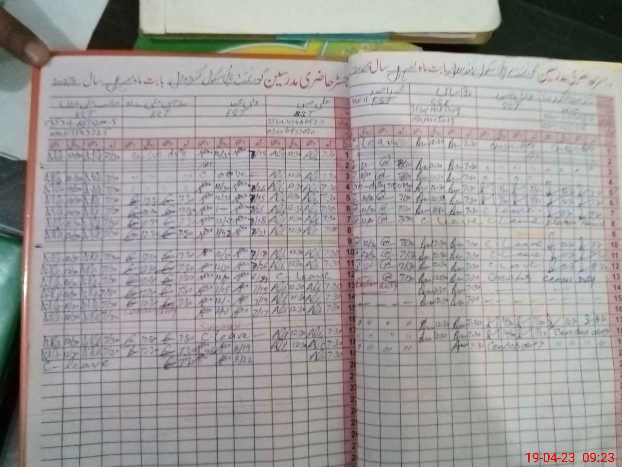 | CNIC | Full Name | Designation | R/C | Absence During Last Calender Month |