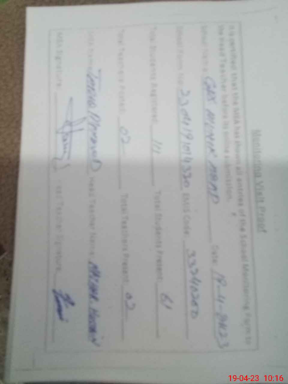 | Certified that this School was Inspected by the Undersigned MEA/DMO Today and the Information Stated Above is as Per Record. | |||||