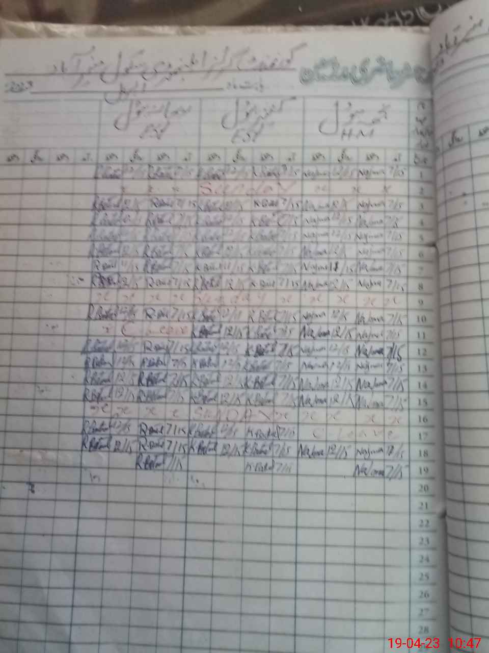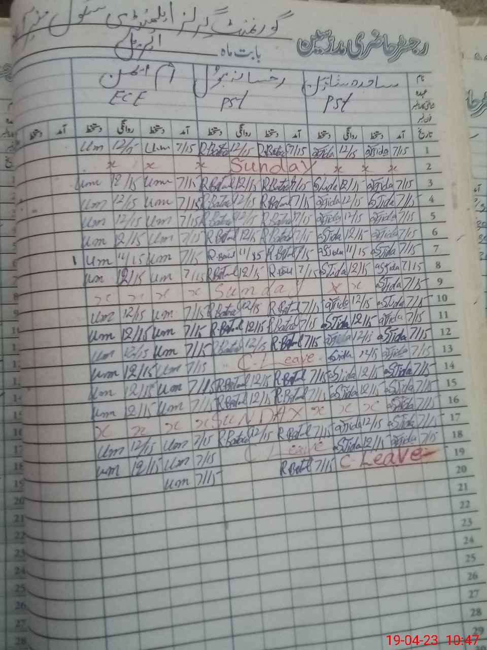 | CNIC | Full Name | Designation | R/C | Absence During Last Calender Month |