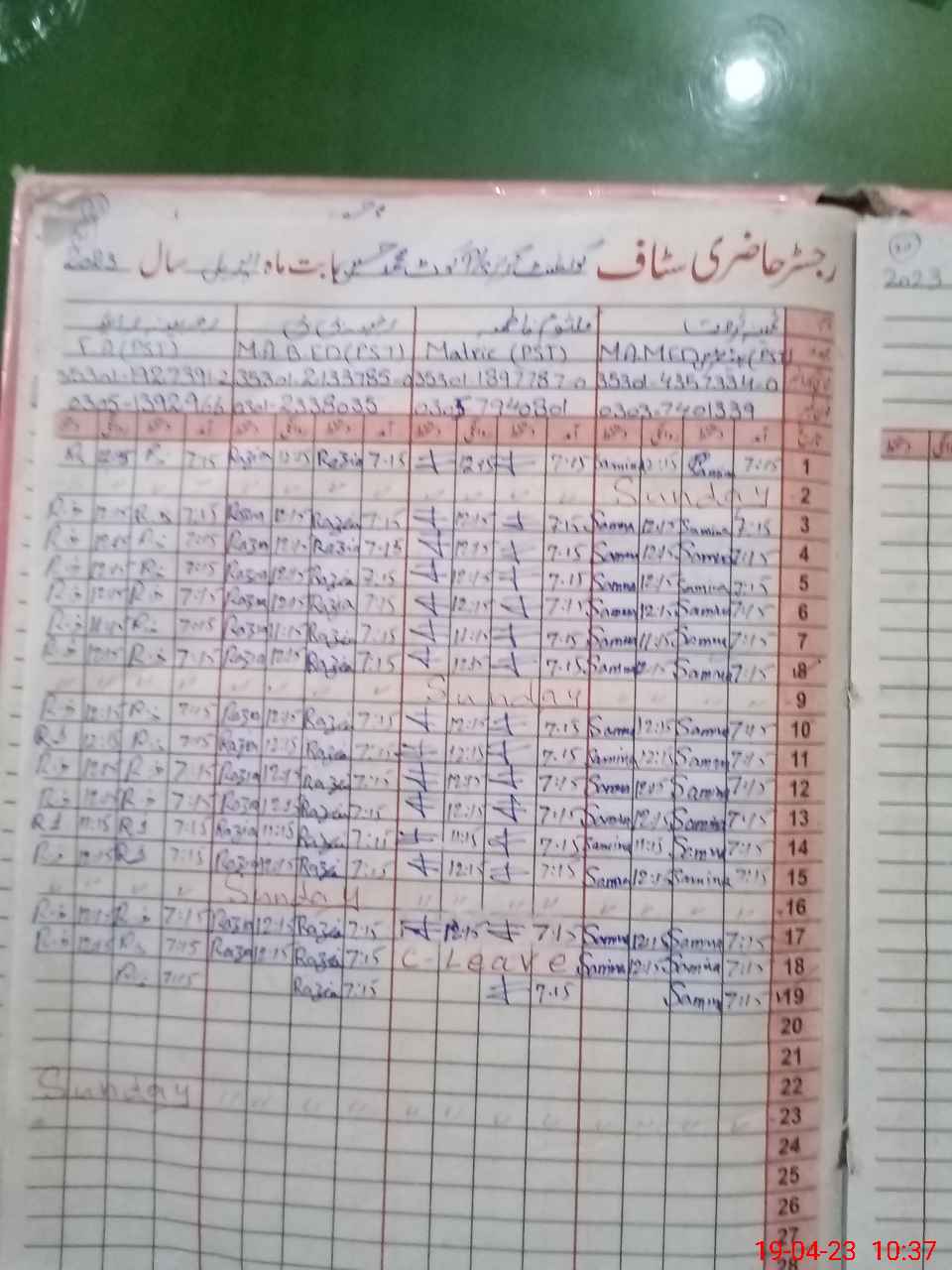 | 35**** | Na**** No**** | PST | Regular | 0 | 0 | 0 | 0 | 0 | 0 | 0 | 0 | 0 | Exam Duty |