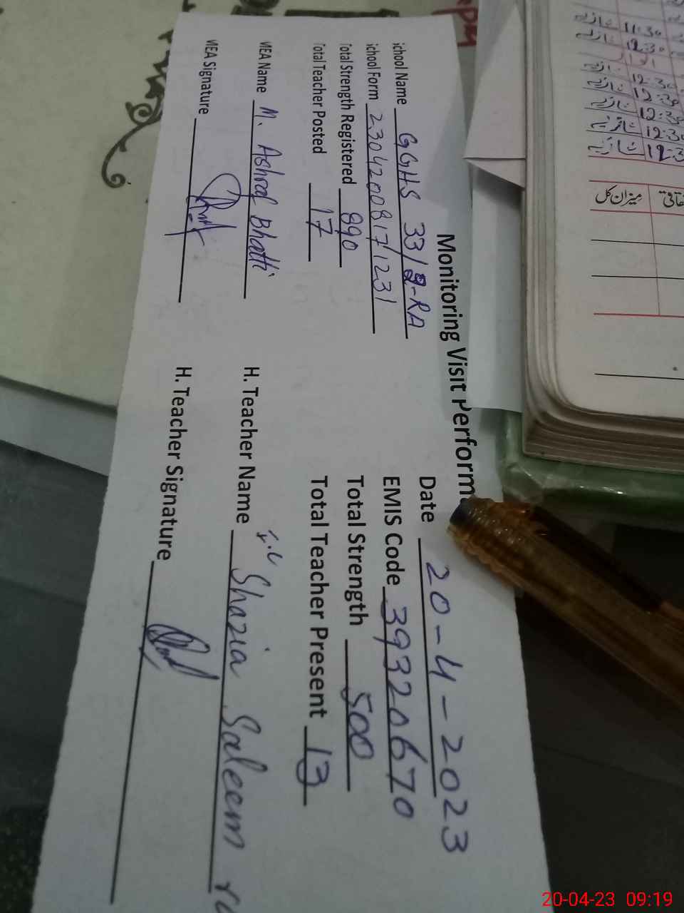 | EMIS Code: 39320670 | Name of School: GGHS 33/2-RA | |||