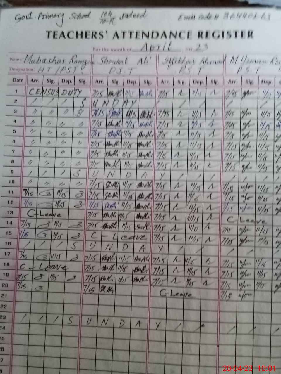 | Name: MU**** RA**** Designation: (School Headmaster's/Headmistress's) PST Phone/Cell Number: 03**** |