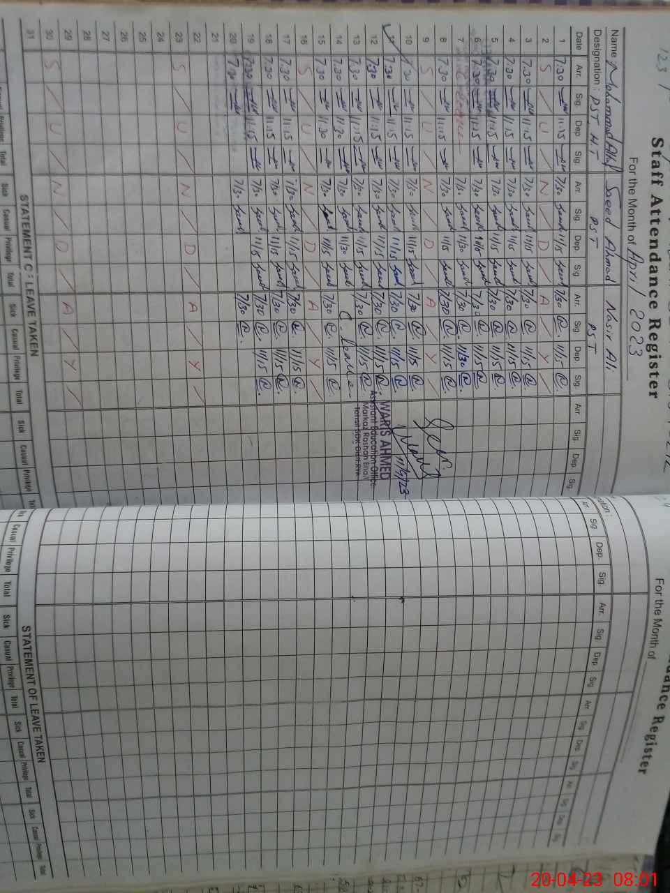 | CNIC | Full Name | Designation | R/C | Absence During Last Calender Month |