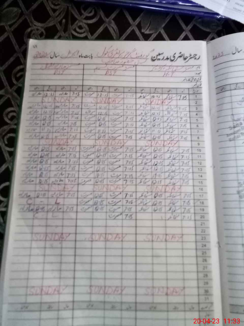 | Name: Sh**** Pa**** Designation: (School Headmaster's/Headmistress's) PST Phone/Cell Number: 03**** |