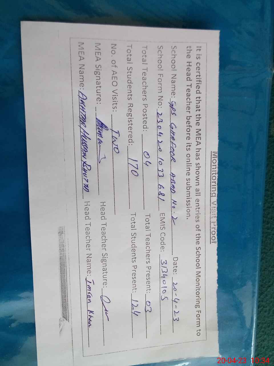 | EMIS Code: 31340105 | Name of School: GPS GHAFOOR A SADIQABAD NO.2 | |||