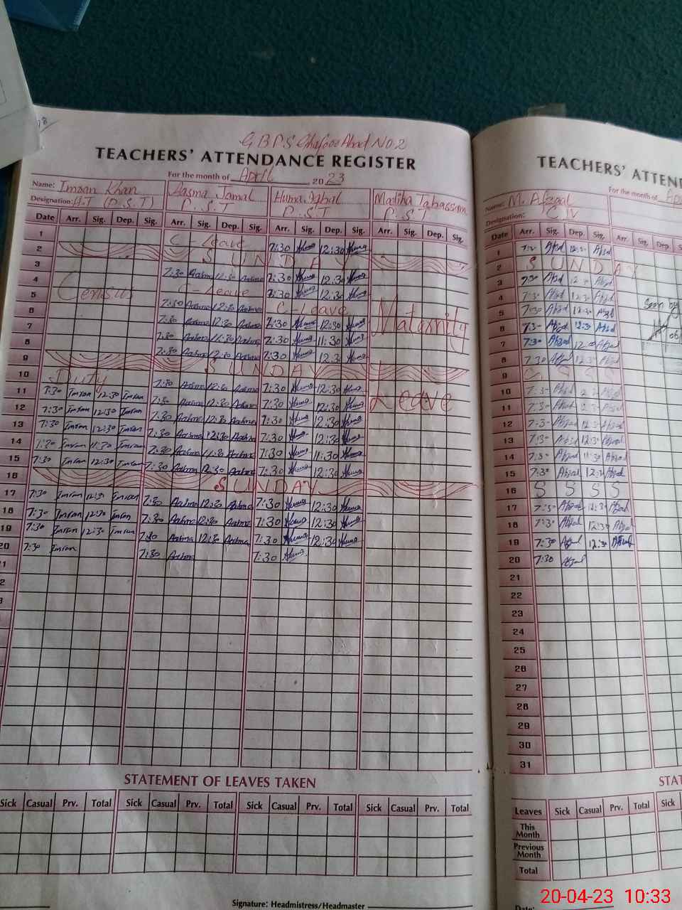 | Name: Im**** Kh**** Designation: (School Headmaster's/Headmistress's) PST Phone/Cell Number: 03**** |