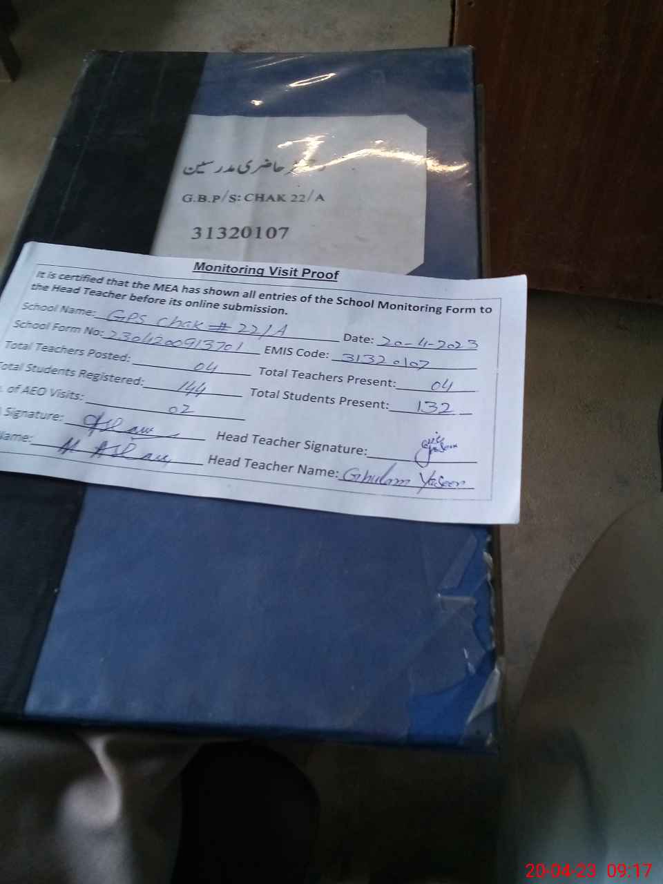 | EMIS Code: 31320107 | Name of School: GPS CHAK 22 A | |||