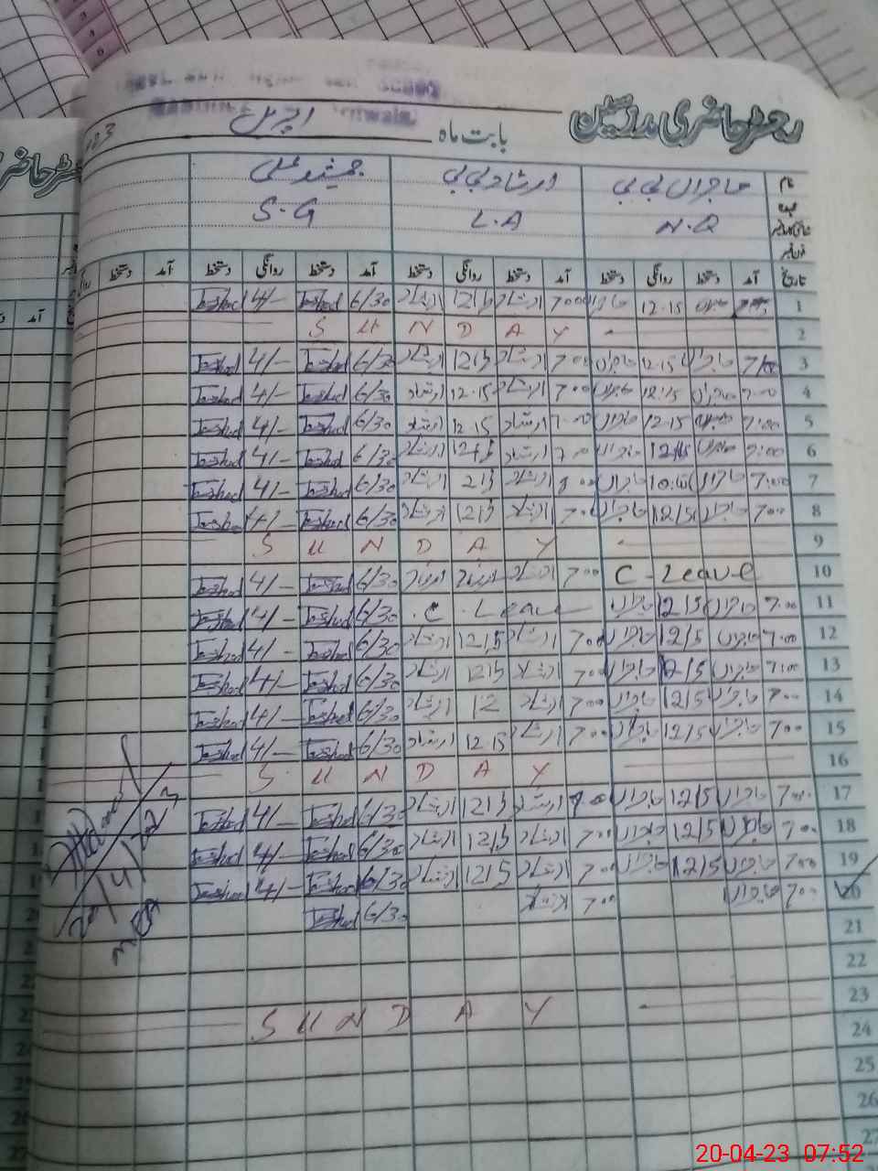 | CNIC | Full Name | Designation | R/C | Absence During Last Calender Month |