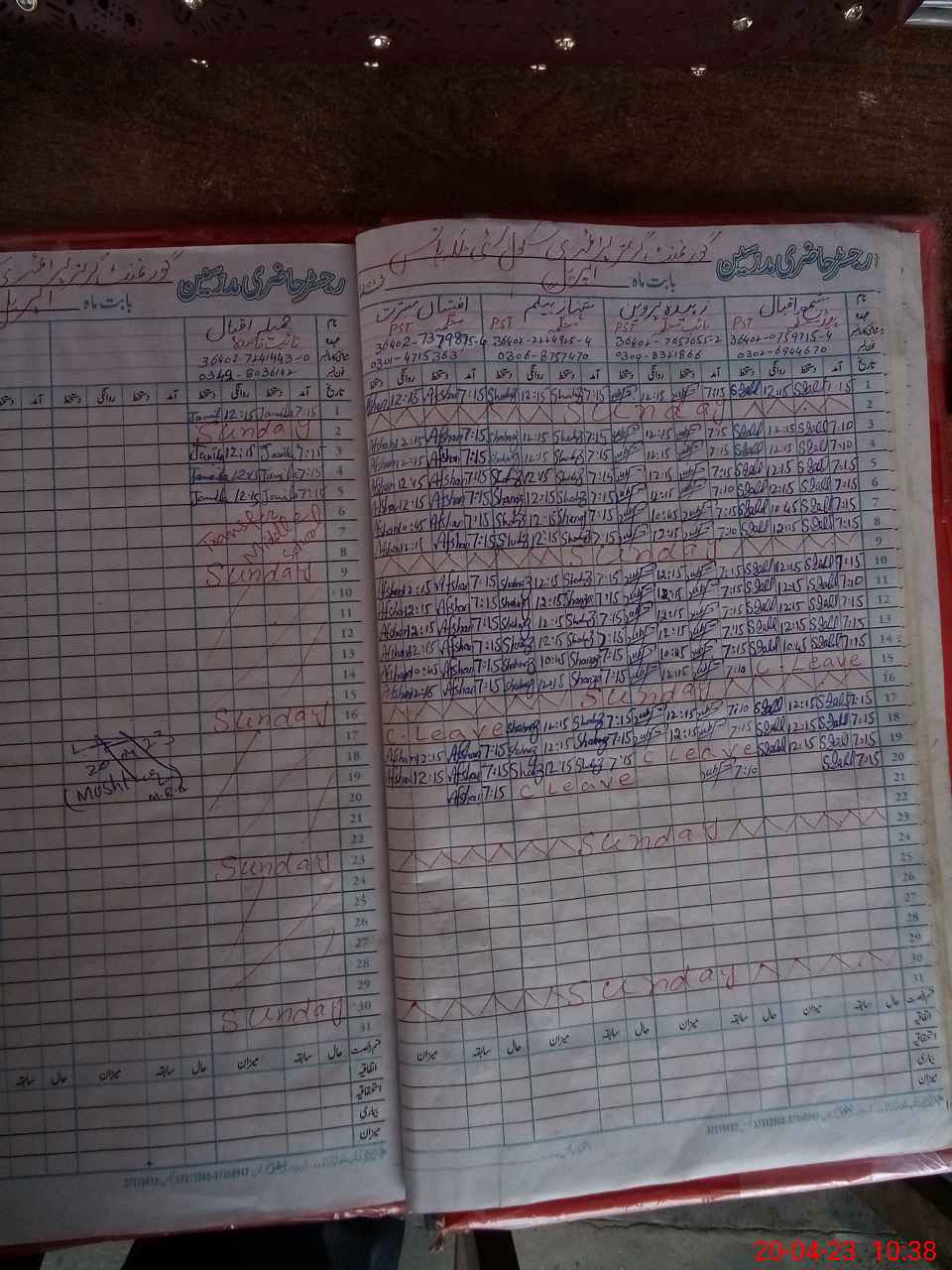 | CNIC | Full Name | Designation | R/C | Absence During Last Calender Month |