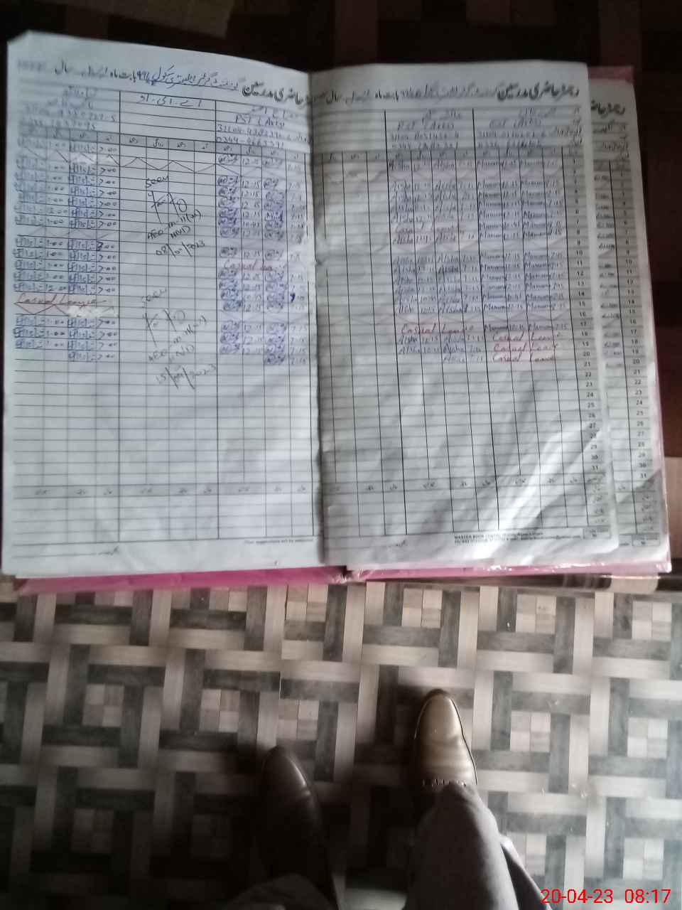 | CNIC | Full Name | Designation | R/C | Absence During Last Calender Month |
