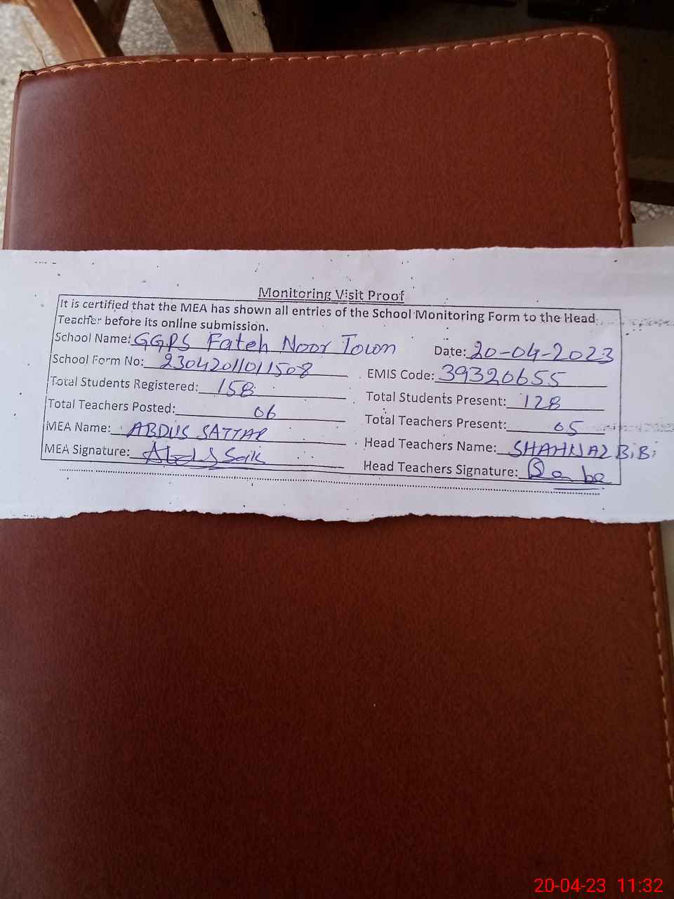 | EMIS Code: 39320655 | Name of School: GGPS FATEH NOOR TOWN | |||