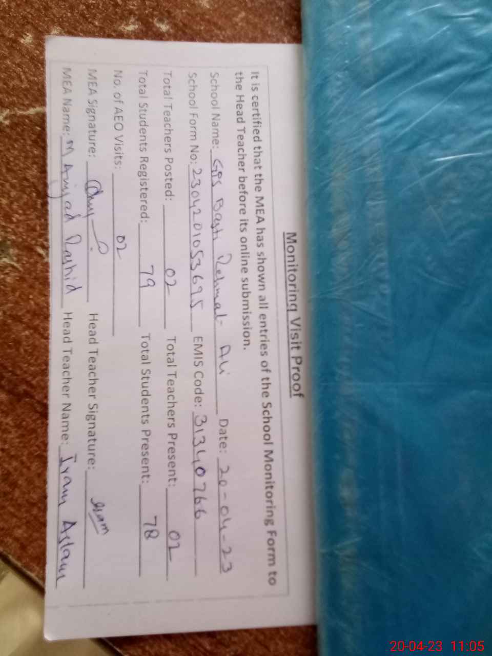 | EMIS Code: 31340766 | Name of School: GPS BASTI RAHMAT ALI | |||