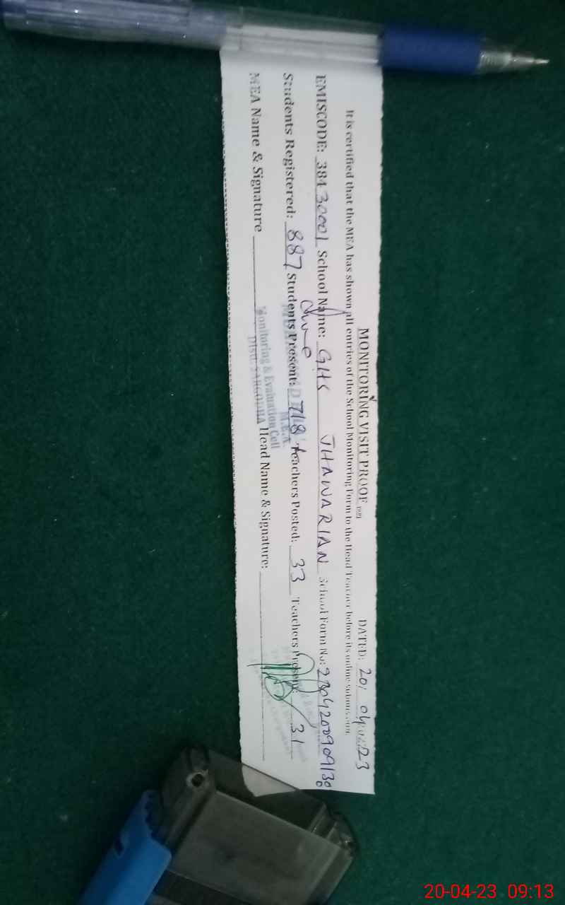 | Attendance Register | Head Teacher | MEA with School | Visit Proof |
