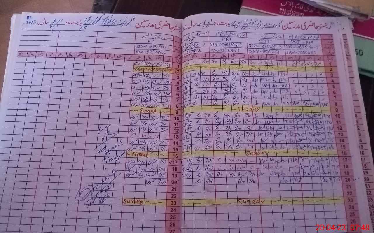 | CNIC | Full Name | Designation | R/C | Absence During Last Calender Month |