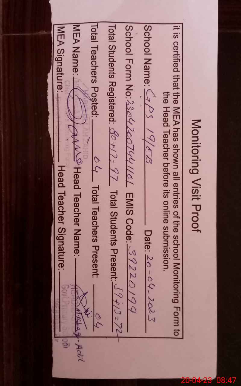 | EMIS Code: 39220199 | Name of School: GPS 19 EB HUSSAIN PUR | |||