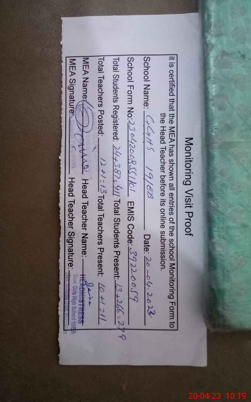| EMIS Code: 39220059 | Name of School: GGHS 19 EB | |||