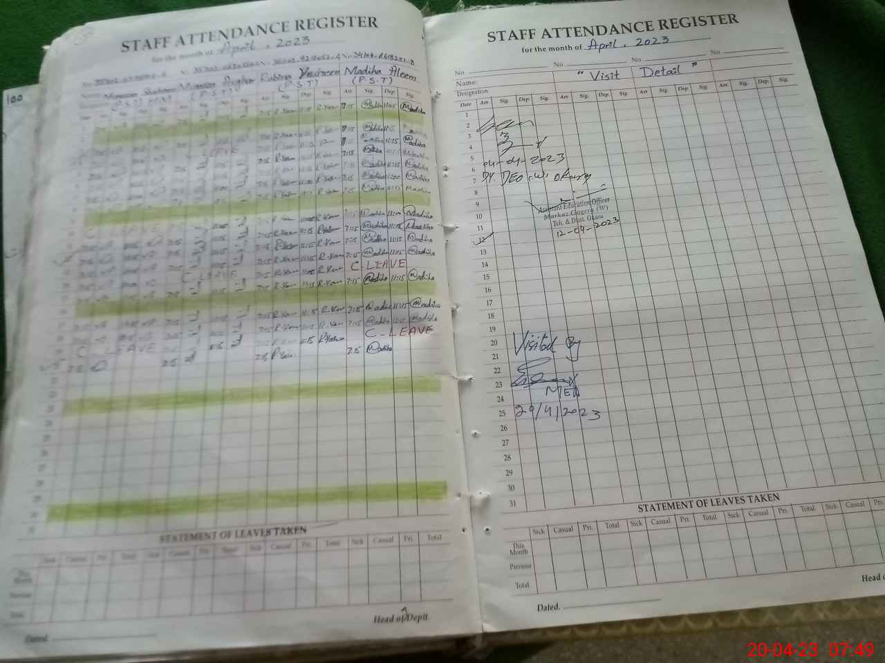 | Attendance Register | Head Teacher | MEA with School | Visit Proof |