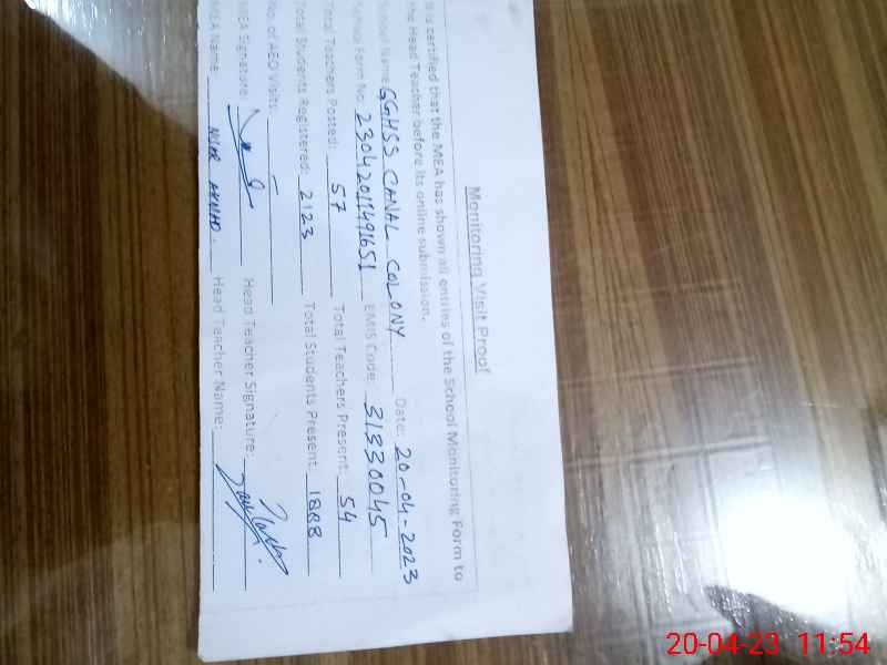 | EMIS Code: 31330045 | Name of School: GGHSS CANAL COLONY | |||