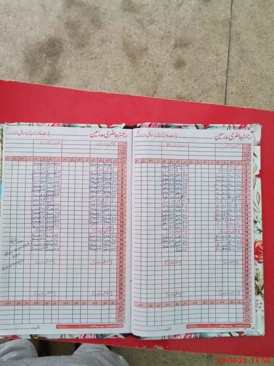 | CNIC | Full Name | Designation | R/C | Absence During Last Calender Month |