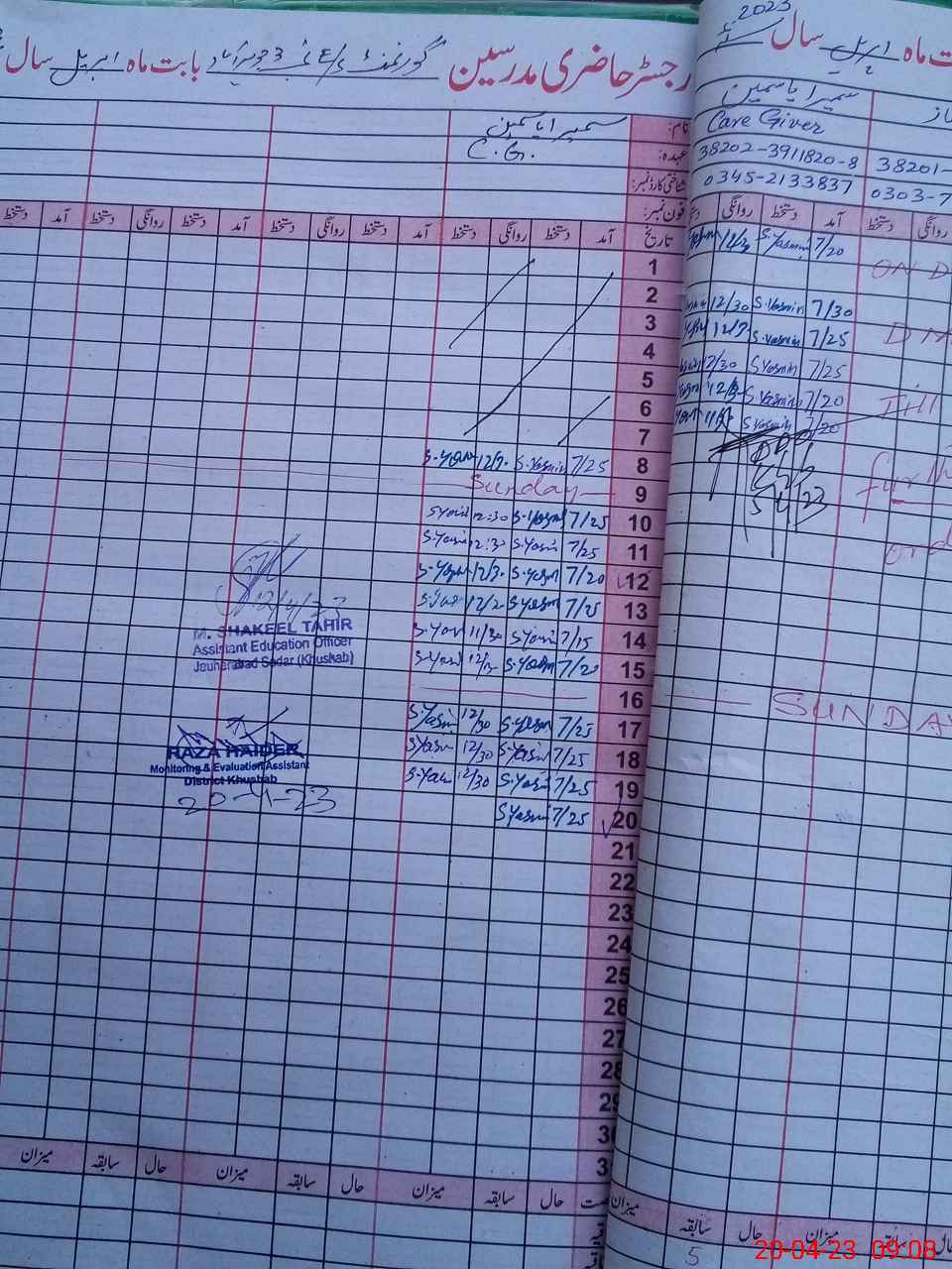 | Name: Am**** Al**** Kh**** Designation: (School Headmaster's/Headmistress's) Sst Phone/Cell Number: 03**** |