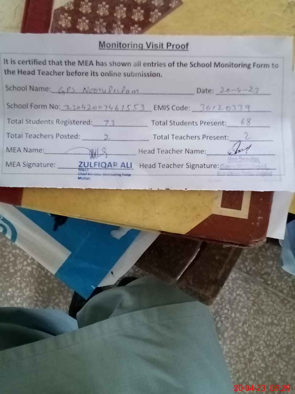 | EMIS Code: 36120339 | Name of School: GPS NOOR-UL-ISLAM | |||