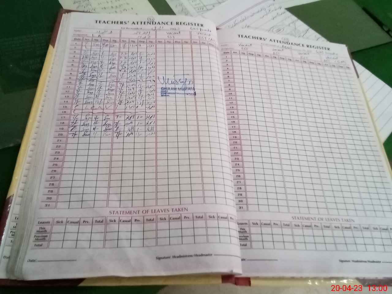 | Attendance Register | Head Teacher | MEA with School | Visit Proof |