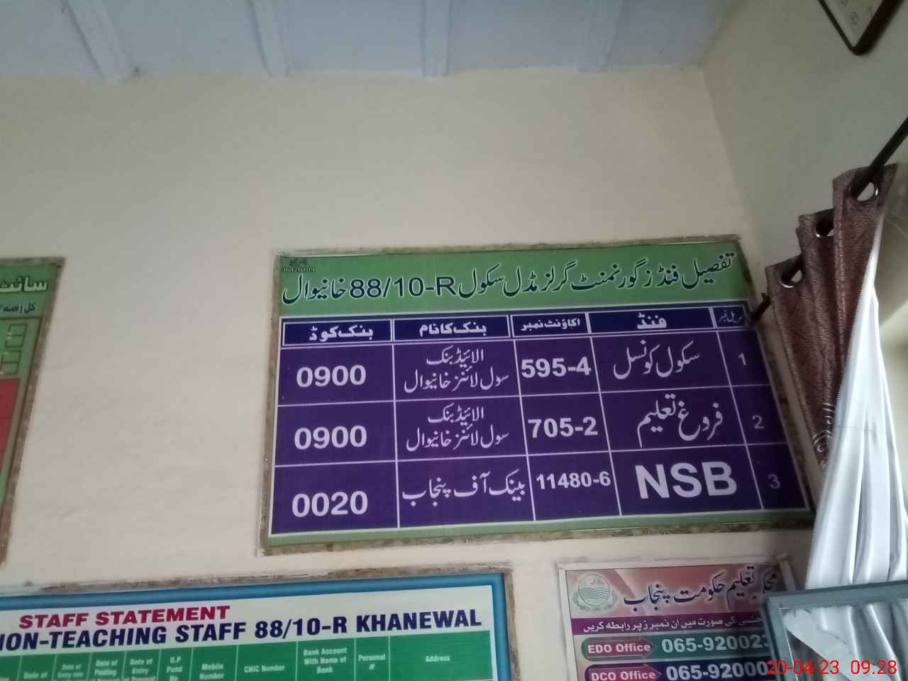 | EMIS Code: 36420109 | Name of School: GGES 88/10-R, KHANEWAL | |||