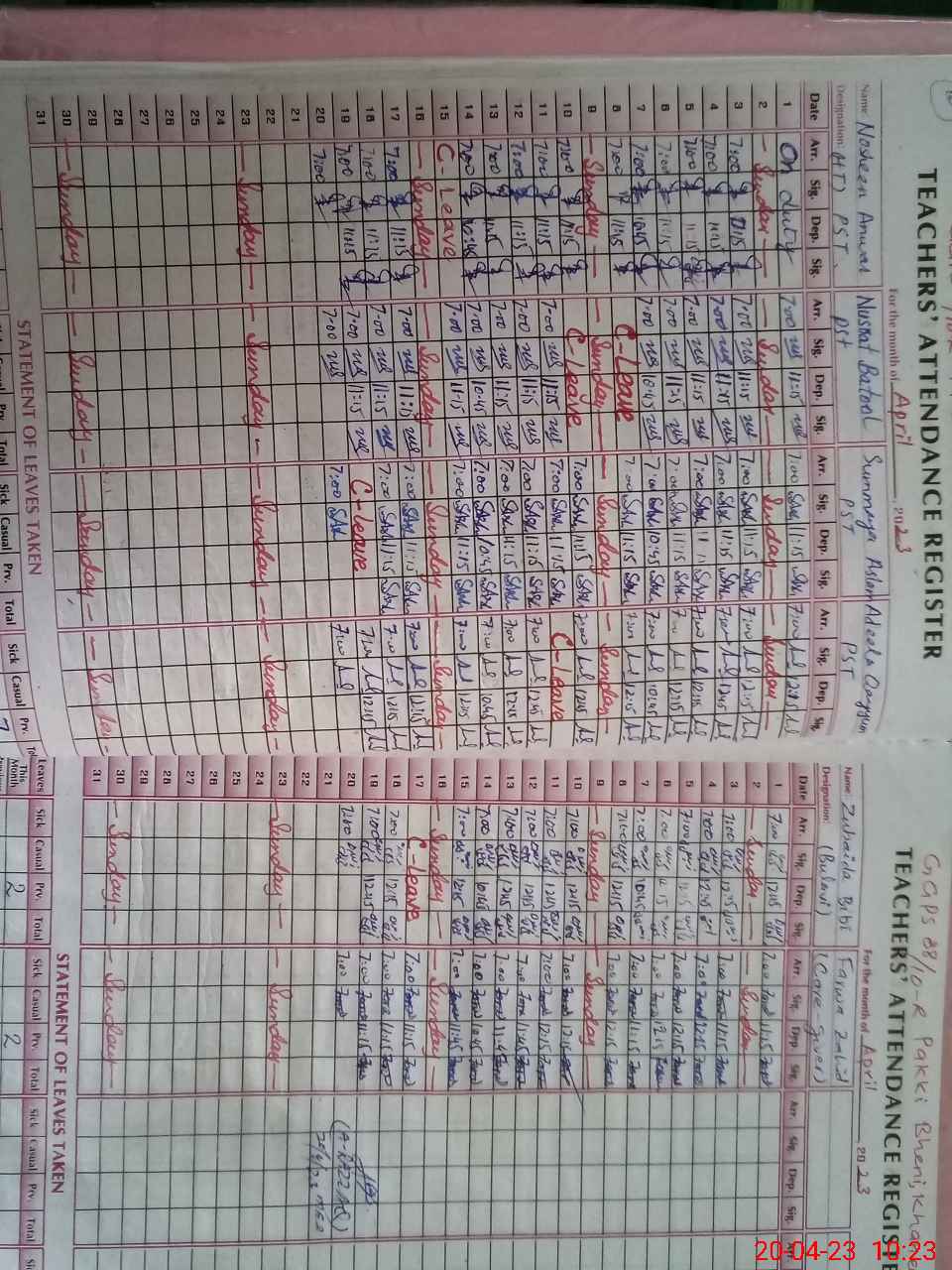 | CNIC | Full Name | Designation | R/C | Absence During Last Calender Month |