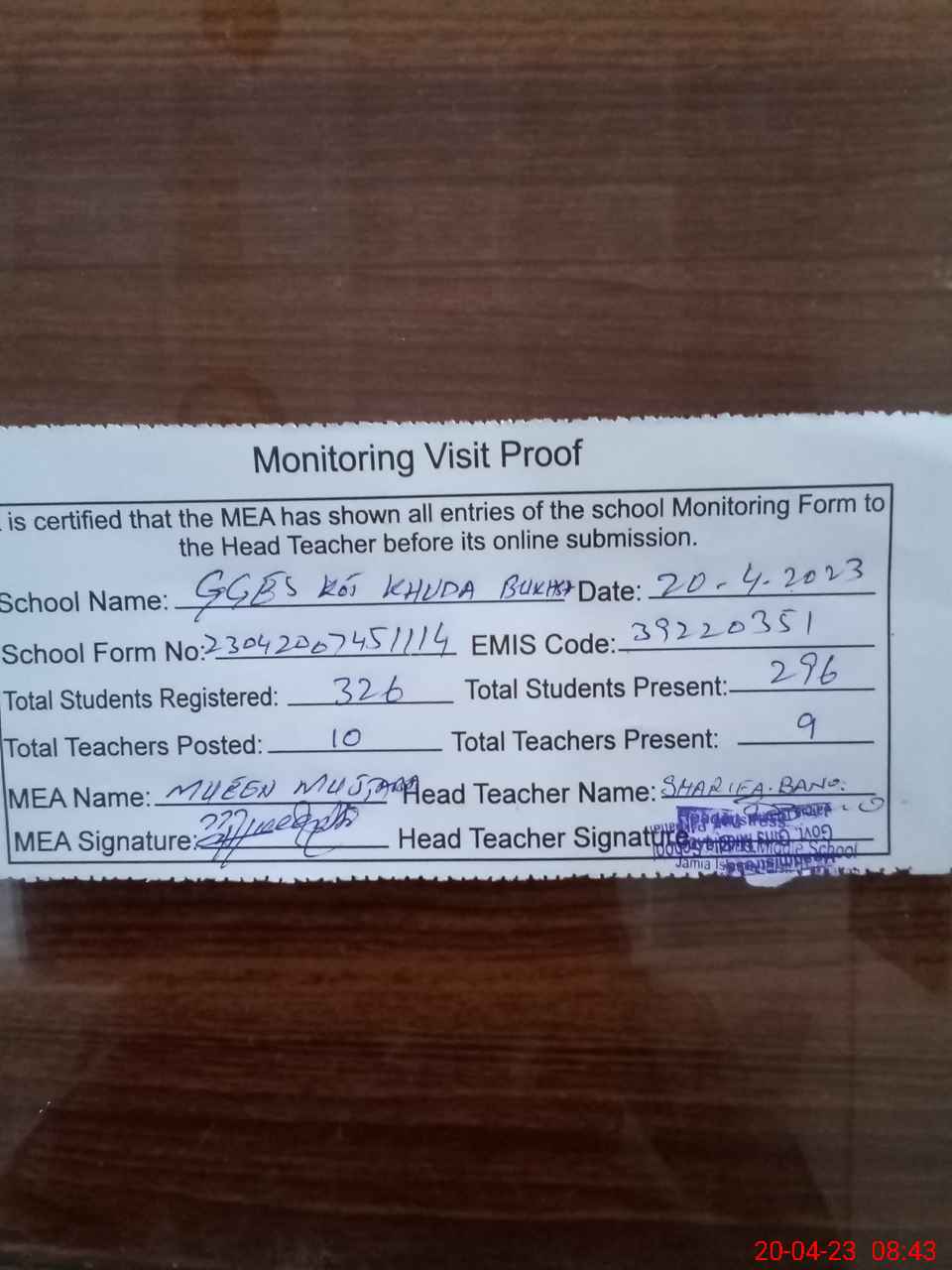 | EMIS Code: 39220351 | Name of School: GGES KOT KHUDA BUKSH | |||