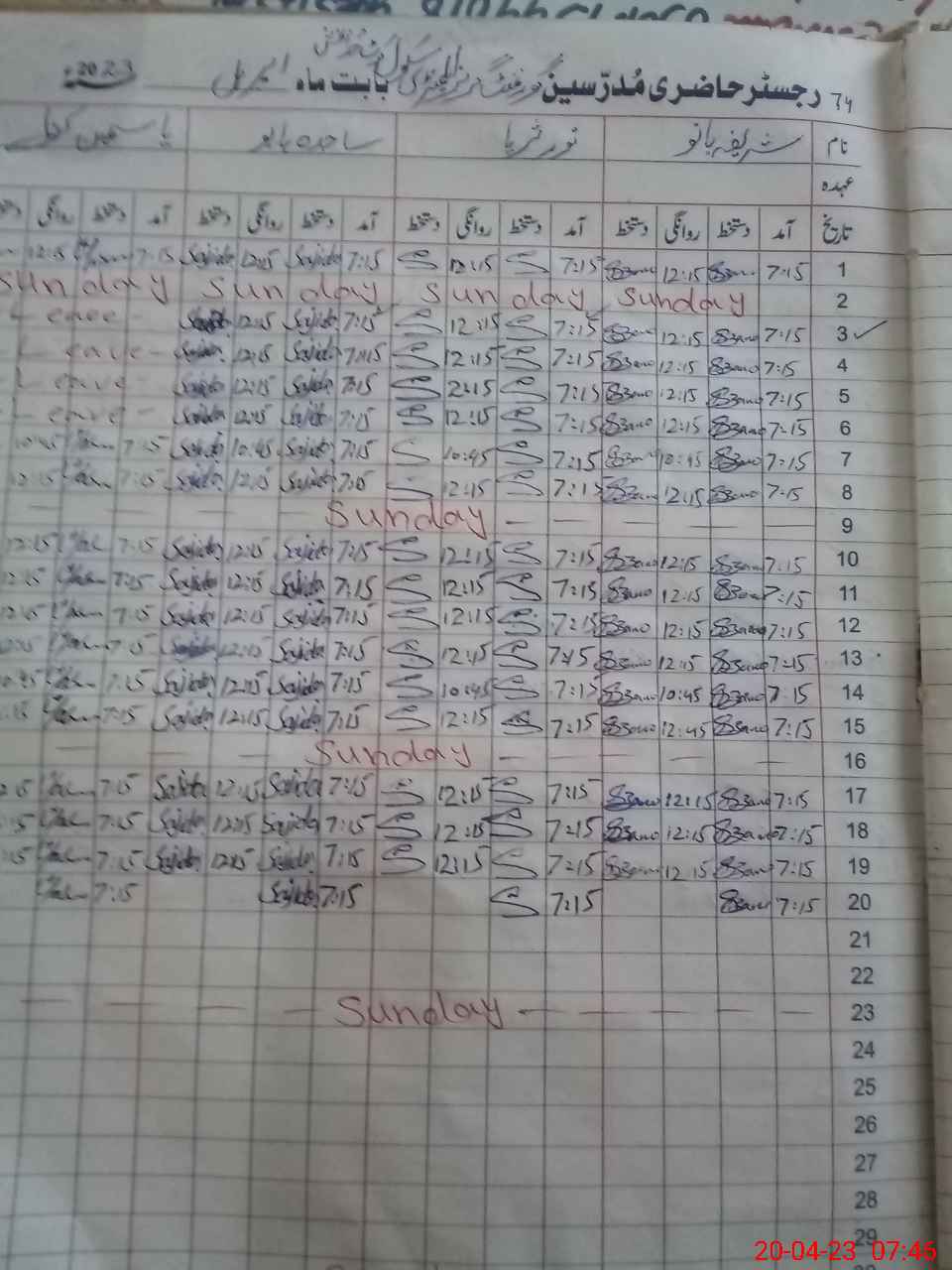 | Name: SH**** BA**** Designation: (School Headmaster's/Headmistress's) S.S.T.(GENERAL) Phone/Cell Number: 03**** |