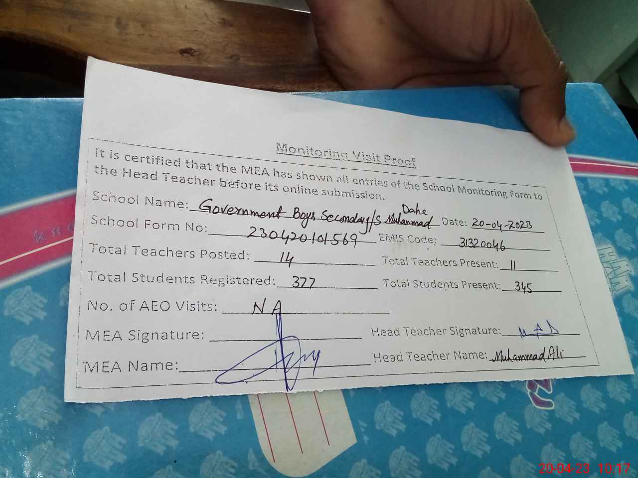 | EMIS Code: 31320046 | Name of School: GHS MUHAMMAD DAHA | |||