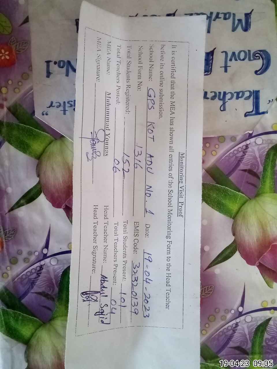 | EMIS Code: 32320139 | Name of School: GPS KOT ADU NO. 1 | |||