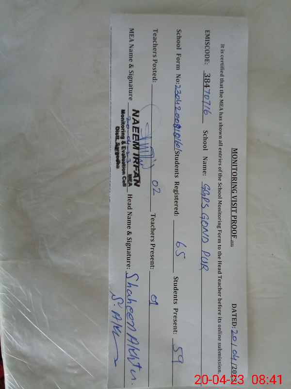 | EMIS Code: 38470716 | Name of School: GGPS GOND PUR | |||