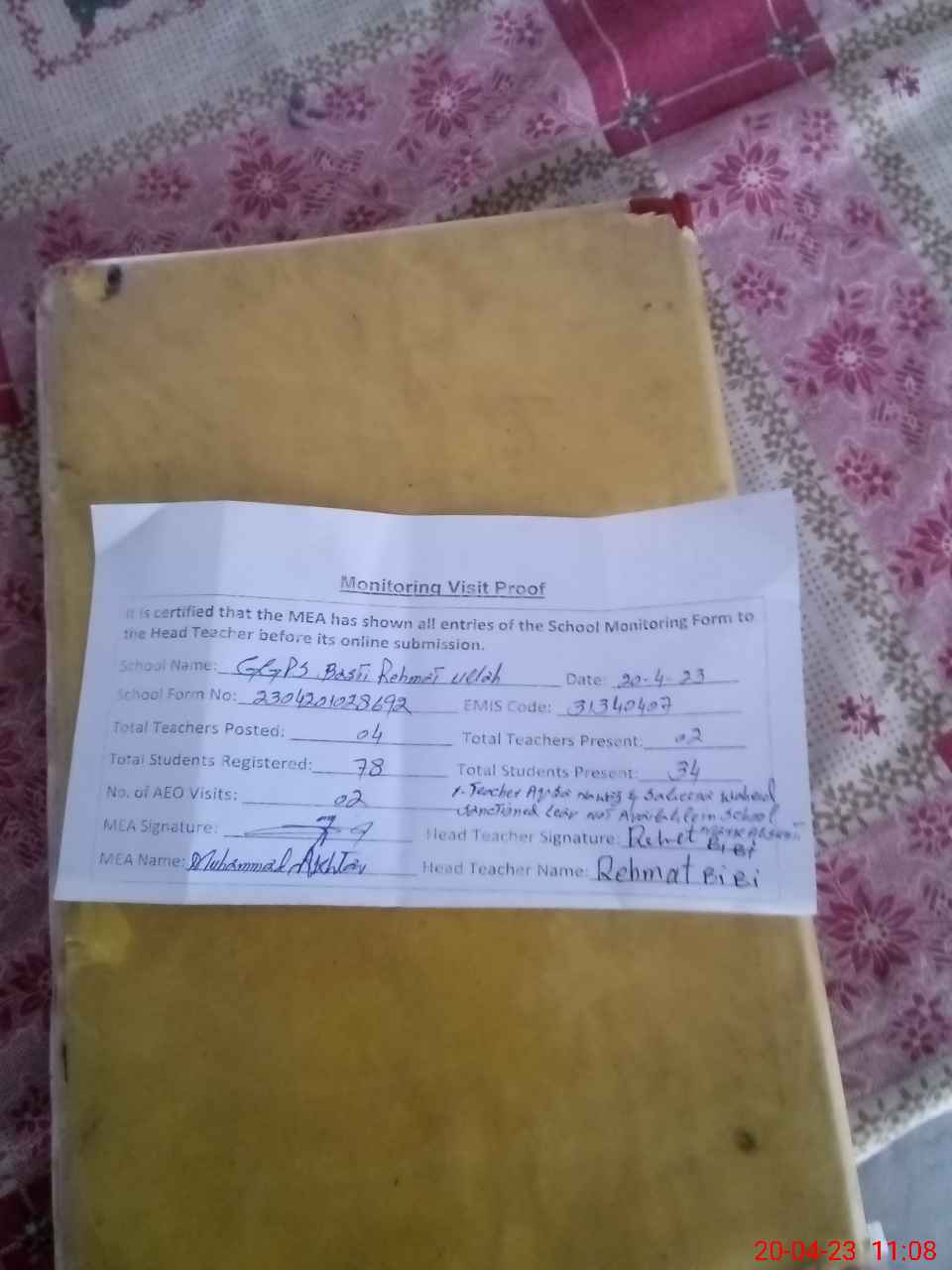 | EMIS Code: 31340407 | Name of School: GGPS BASTI REHMAT ULAH | |||