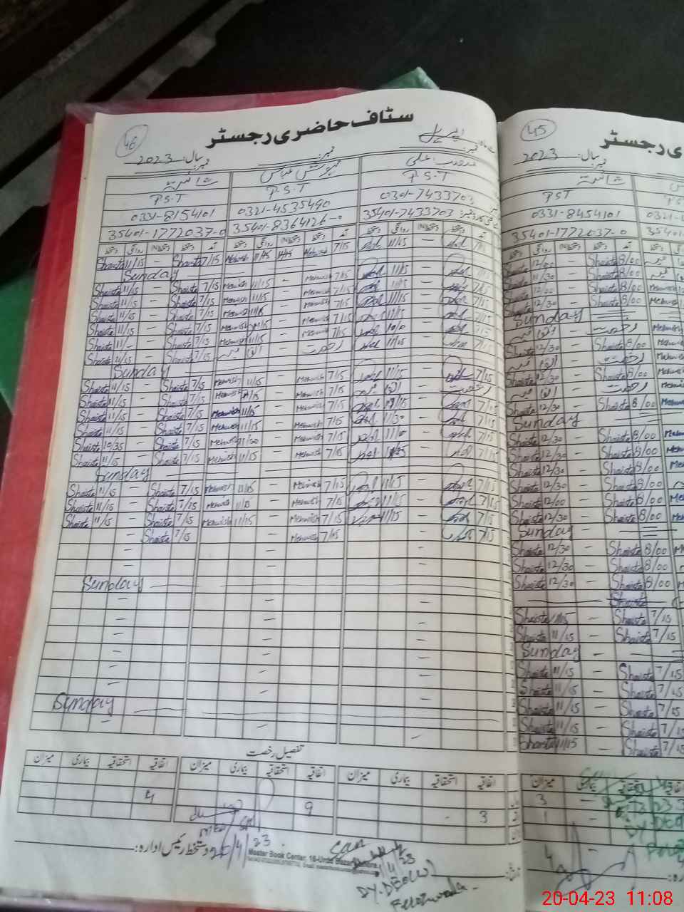 | CNIC | Full Name | Designation | R/C | Absence During Last Calender Month |