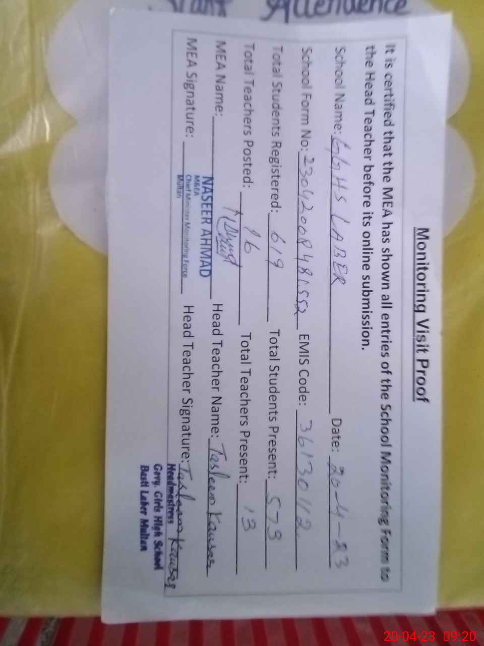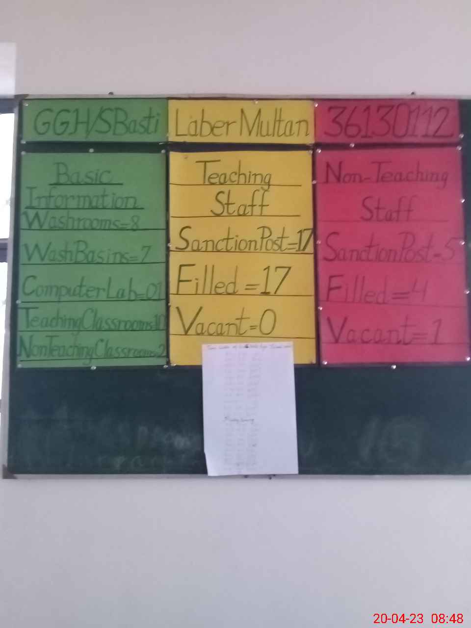 | EMIS Code: 36130112 | Name of School: GGHS LABER MORE MULTAN | |||