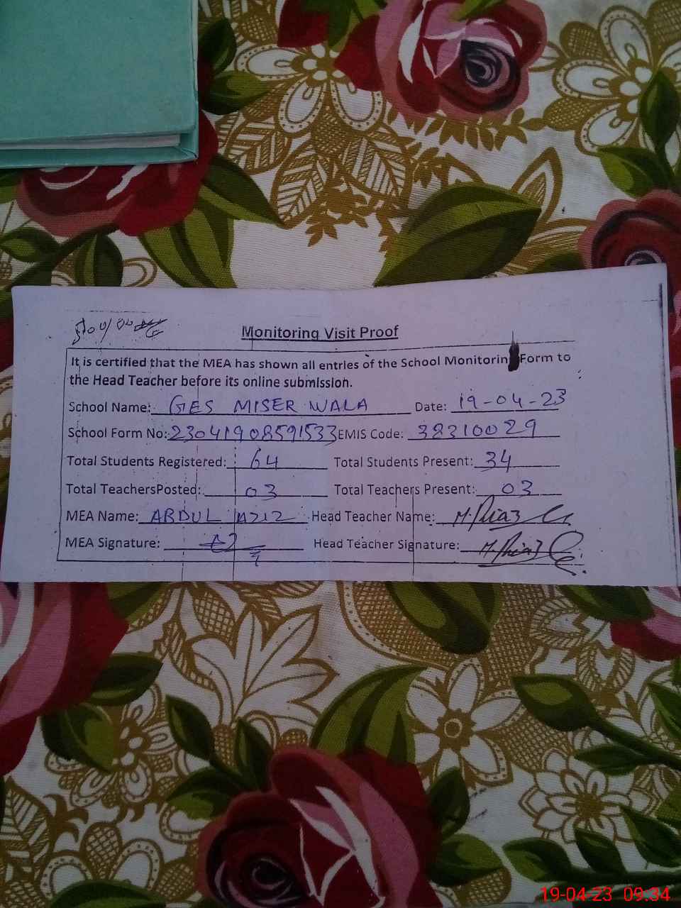 | EMIS Code: 38310029 | Name of School: GES MISSAR WALA | |||