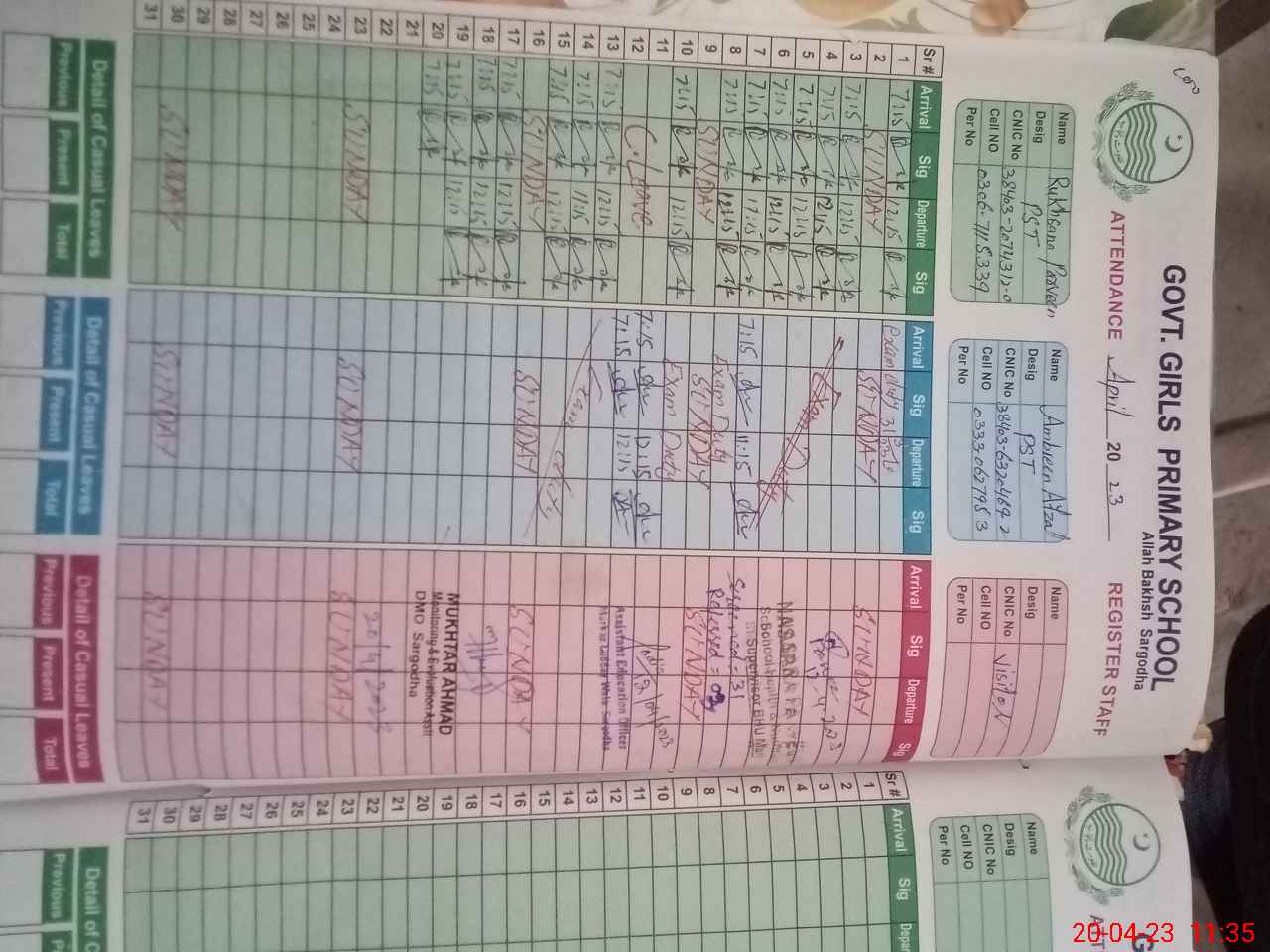 | Name: RU**** PA**** Designation: (School Headmaster's/Headmistress's) PST Phone/Cell Number: 03**** |