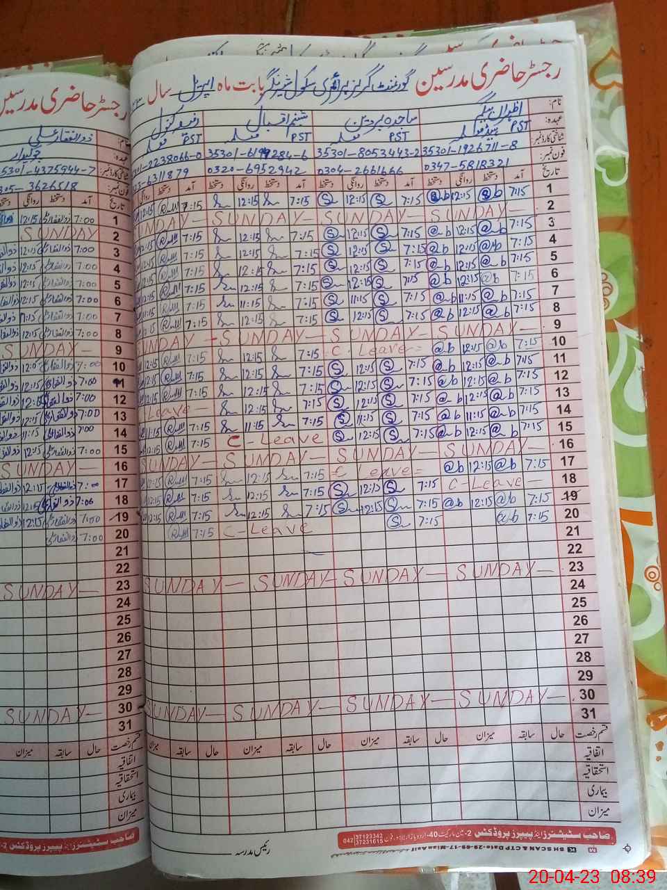 | Name: AZ**** Be**** Designation: (School Headmaster's/Headmistress's) PST Phone/Cell Number: 03**** |