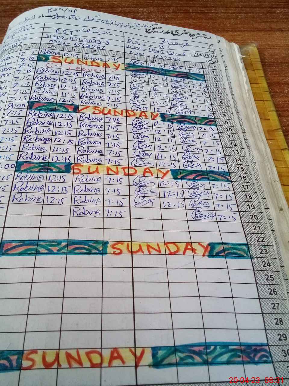 | CNIC | Full Name | Designation | R/C | Absence During Last Calender Month |