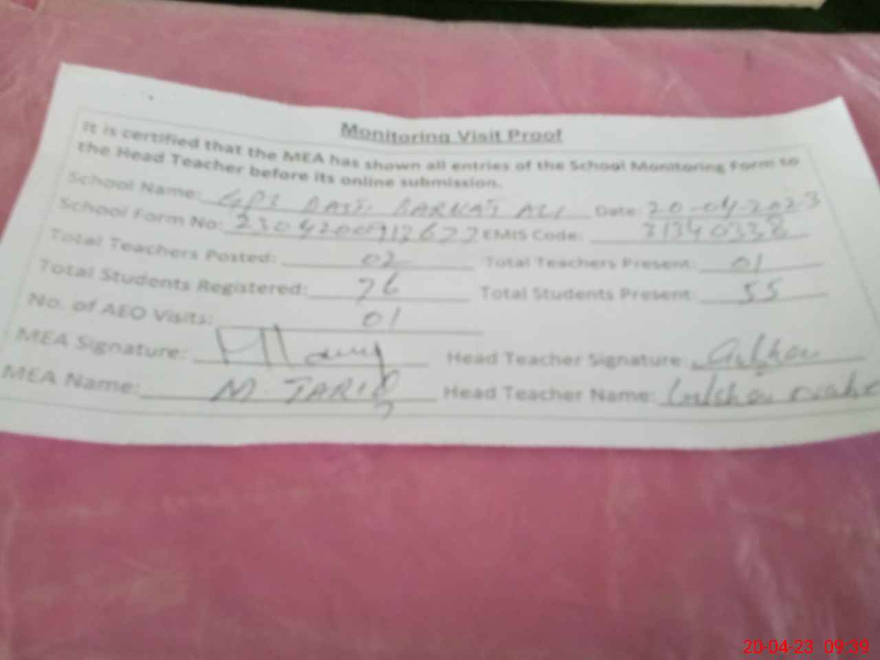 | EMIS Code: 31340338 | Name of School: GPS BASTI BARKAT ALI | |||