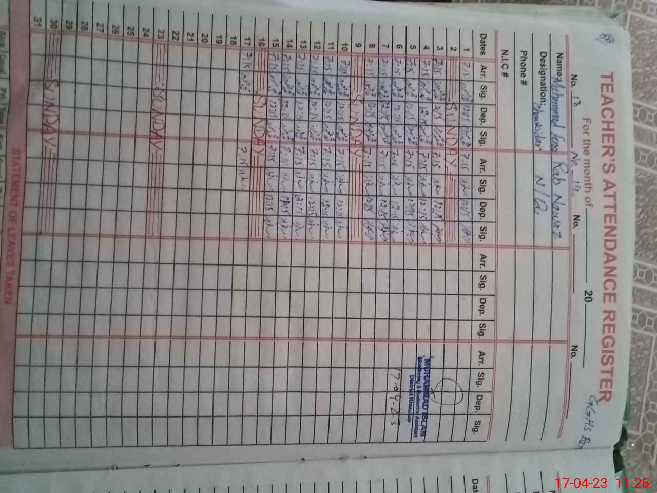 | 38**** | Sa**** Qa**** | Regular | 0 | 0 | 0 | 0 | 0 | 0 | 0 | 0 | 0 | Exam Duty | |