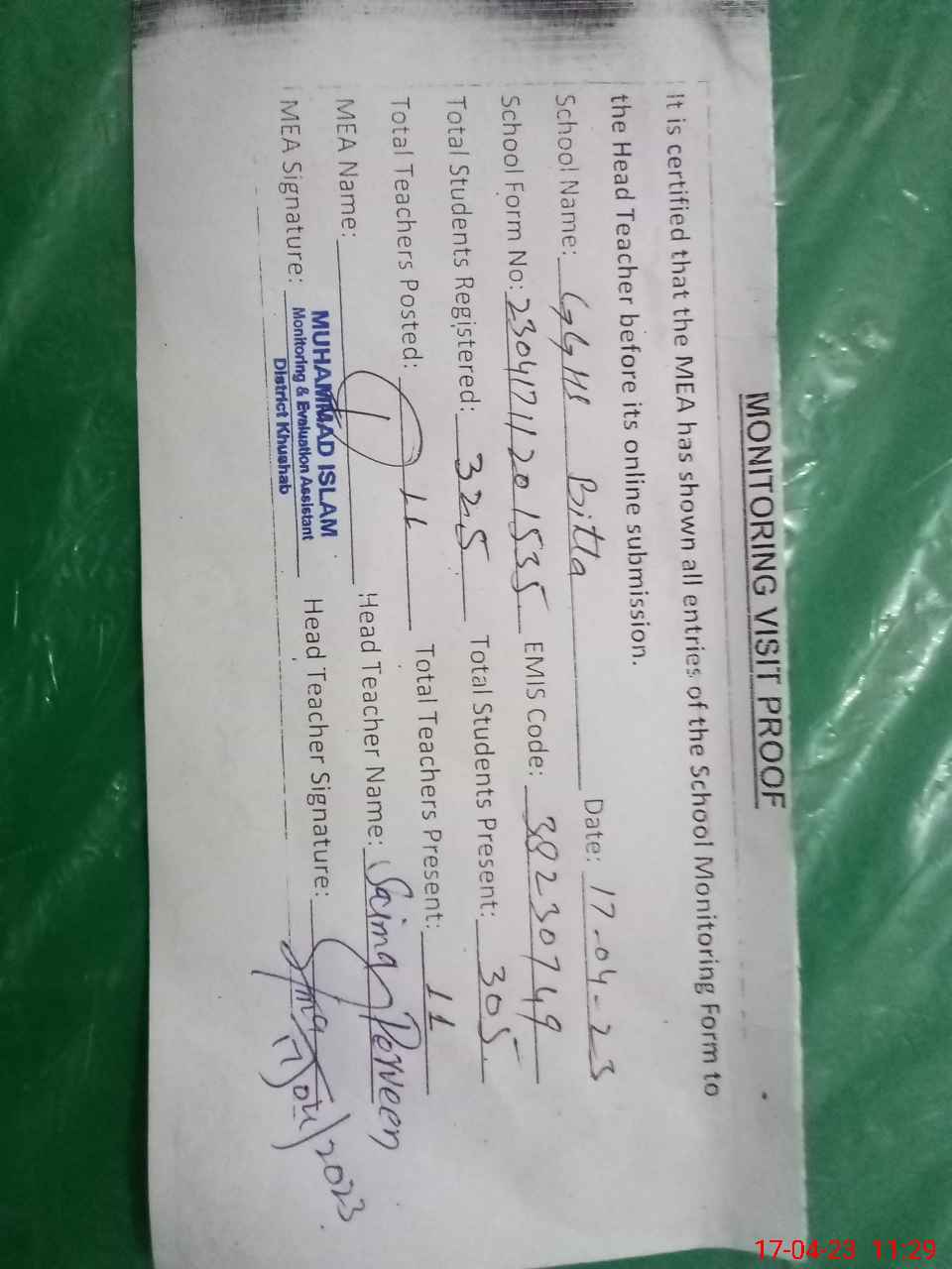 | EMIS Code: 38230749 | Name of School: GGHS BITTA | |||