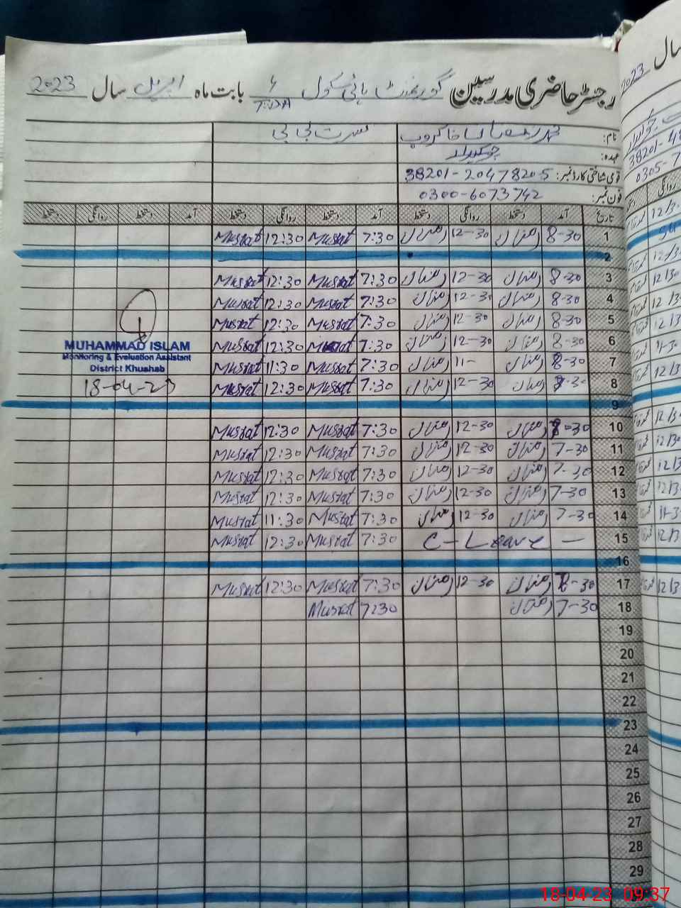 | 38**** | Ra**** Mu**** Im**** La**** | EST | Regular | 0 | 0 | 0 | 0 | 0 | 0 | 0 | 0 | 0 | Exam Duty |