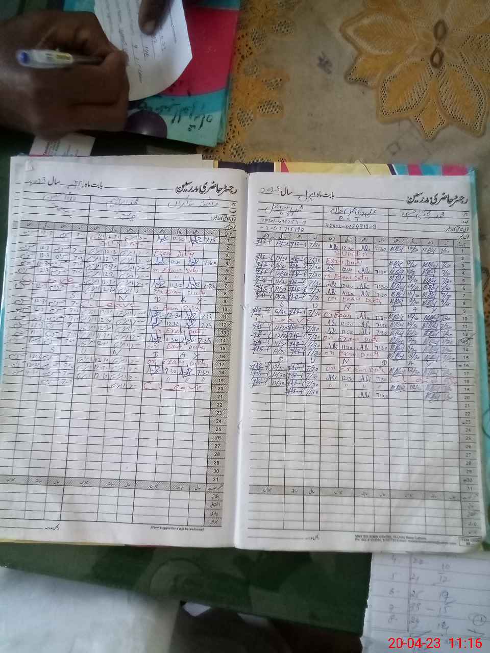 | CNIC | Full Name | Designation | R/C | Absence During Last Calender Month |