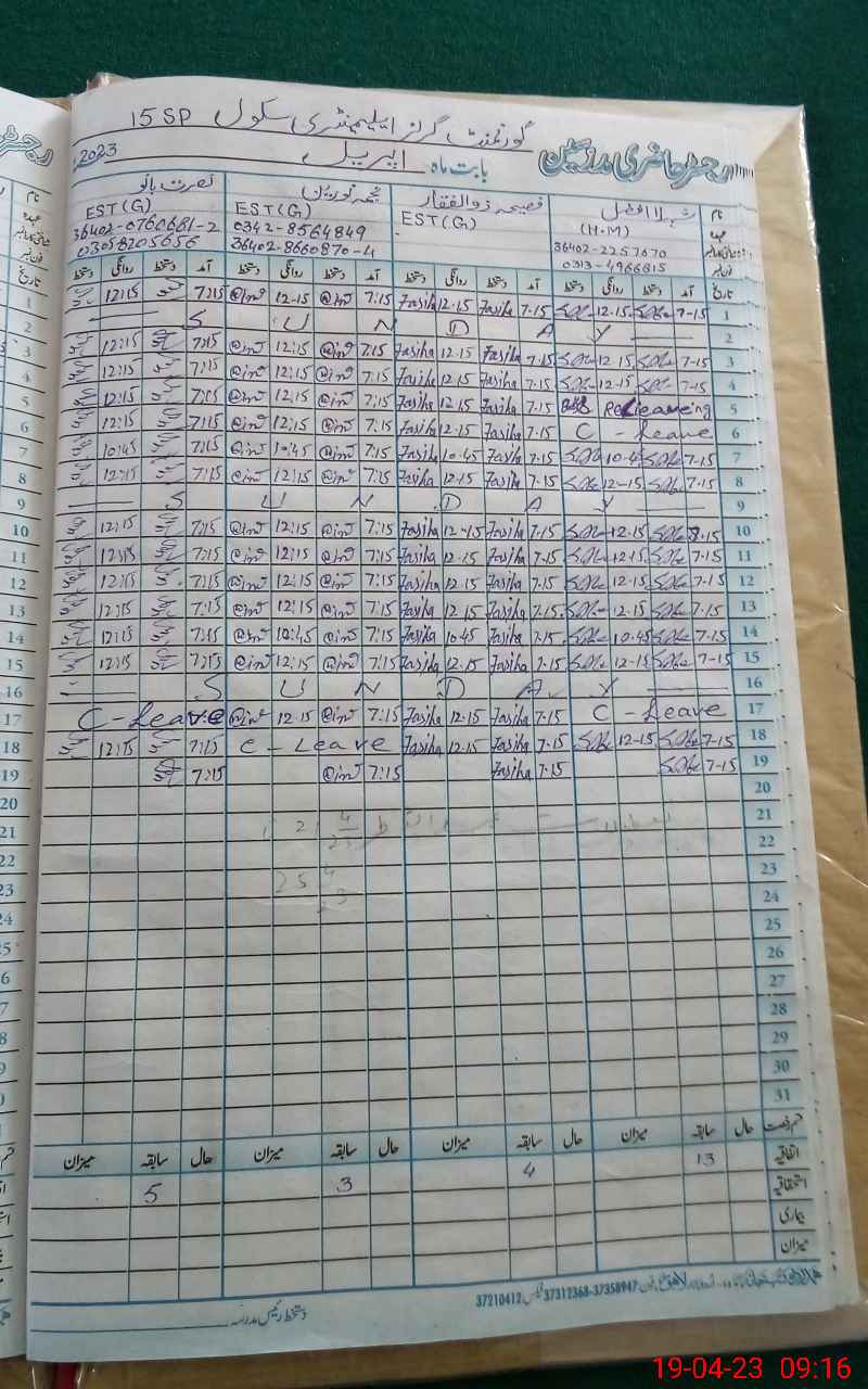 | Name: SH**** AF**** Designation: (School Headmaster's/Headmistress's) S.S.T.(GEN) Phone/Cell Number: 03**** |