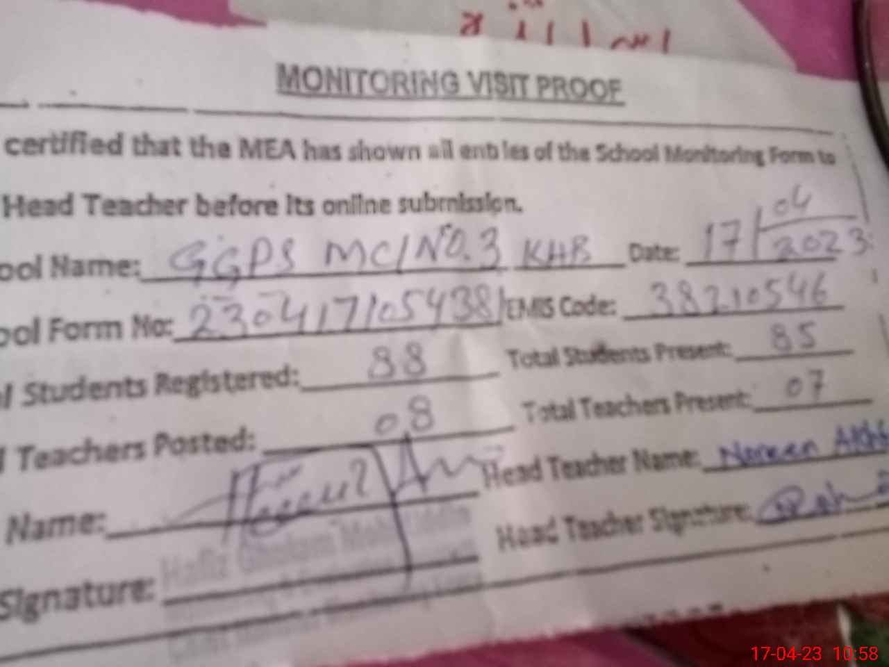 | EMIS Code: 38210546 | Name of School: GGPS MC NO.3 KHUSHAB | |||