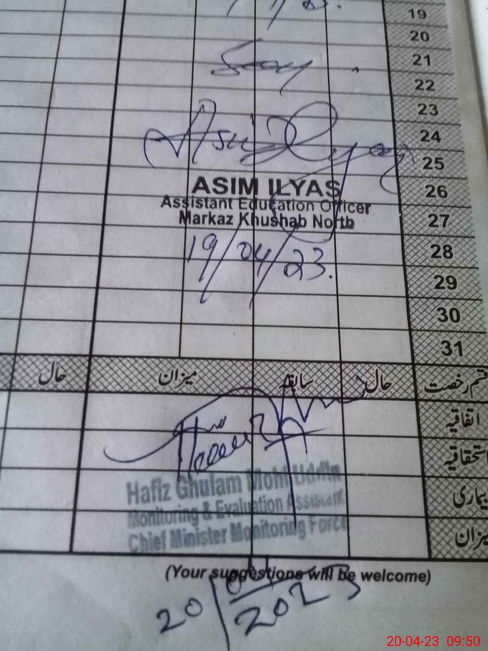 | District: KHUSHAB | Tehsil: KHUSHAB | Markaz: KHUSHAB (NORTH) (MALE) | Level: Primary | |