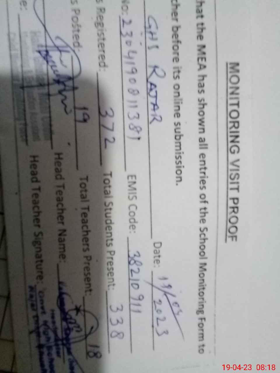| EMIS Code: 38210911 | Name of School: GHS RAJAR | |||