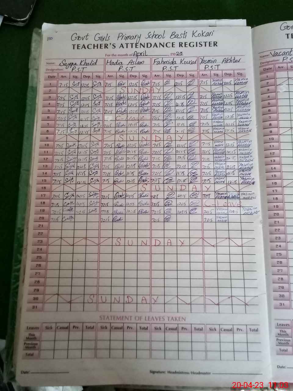 | 31**** | Ha**** Sa**** Sh**** | PST | Regular | 0 | 0 | 0 | 0 | 0 | 0 | 0 | 0 | 0 | Absent (Un-Authorized) |